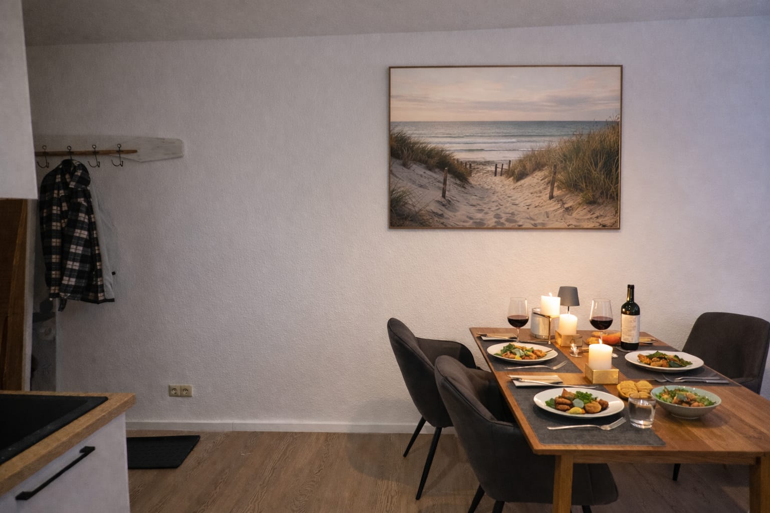 Alle Ferienwohnungen sind neuwertig ausgestattet und verfügen über eine Spülmaschine, Fernseher und gehobene Küchenausstattung. Für die Kinder stehen Bollerwagen mit Spielzeug für einen Strandbesuch zur Verfügung. Ein Spielplatz ist direkt um die Ecke. In der Wohnung Leuchthunde sind 4-Beiner herzlich Willkommen.